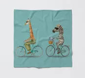 Peppen Sie Ihre Inneneinrichtung mit diesem stilvollen und skurrilen Aquarell "Safari Cyclists" auf. Dieses einzigartige Kunstwerk zeigt ein raffiniertes Paar anthropomorpher Tiere auf Fahrrädern, die perfekt geeignet sind, um jedem modernen Zuhause, Kinderzimmer oder Büroraum Charakter zu verleihen. Das Kunstwerk zeigt eine hochgewachsene Giraffe mit Sonnenbrille und eleganter khakifarbener Hose, die neben einem modischen Zebra radelt, das ebenfalls eine Sonnenbrille trägt und einen kleinen ausgestopften Elefanten in einem klassischen Weidenkorb mit sich führt. Beide Tiere sind auf eleganten Fahrrädern im Vintage-Stil vor einem auffälligen türkisfarbenen Hintergrund abgebildet.