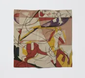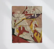 This painting showcases abstract figures in vibrant colors, including red, yellow, and purple. The composition is lively and full of energy.