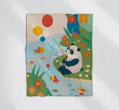 This cute design features a panda having fun fishing, full of adorable details and bright colors.