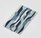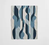 Ein gewagtes abstraktes Muster mit einem Hauch von dynamischer Energie, das Bewegung und Fließen symbolisiert. Kräftige Farben, die Themen wie Wasser, Leben und Bewegung hervorrufen. Eine innovative Verschmelzung von Tradition und Moderne für zeitgemäße, minimalistische Innenräume. eine einzigartige visuelle Sprache, die kulturelle Grenzen überwindet.