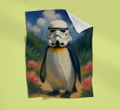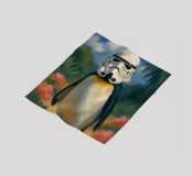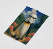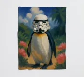 Ein Pinguin mit Stormtrooper-Helm – gemalt wie ein klassisches Ölgemälde inmitten tropischer Blüten und Palmen. Dieses Bild ist eine charmant-skurrile Mischung aus Popkultur, Tierporträt und Kunstgeschichte. Humorvoll, detailreich und einzigartig – ein echtes Highlight für Star Wars-Fans, Tierliebhaber:innen und kreative Räume mit Augenzwinkern.
