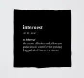 Genießen Sie Ihre digitale Komfortzone mit unserem witzigen Typografie-Kunstdruck "Internet". Dieses clevere Design präsentiert eine humorvolle Definition im Stil eines Wörterbuchs in gestochen scharfer weißer Serifenschrift auf einem schlichten schwarzen Hintergrund und fängt die gemütliche Realität des modernen Online-Lebens perfekt ein. Es ist ideal für Technikbegeisterte, Heimwerker und alle, die ein gutes Netflix-Fernsehvergnügen zu schätzen wissen, und verleiht jedem Raum einen Hauch von sympathischem Humor. Der starke Kontrast und der formale Typografiestil schaffen ein visuell auffälliges Stück, das sowohl amüsant als auch stilvoll ist. Erhältlich auf verschiedenen Produkten, ist dieses vielseitige Design ein perfektes Geschenk für alle, die