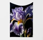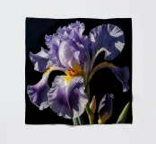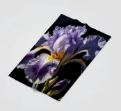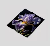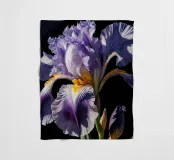 A stunning bearded iris in full bloom, captured in a close-up view against a dark background. The intricate details of the flower's ruffled petals, vibrant colors, and contrasting textures are beautifully highlighted. This exquisite artwork celebrates the beauty and elegance of nature's creations.