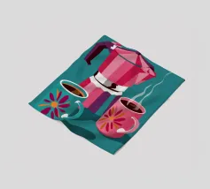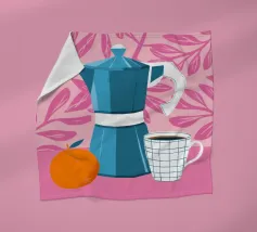 Dieses Kunstwerk ist eine lebhafte Hommage an die Kaffeekultur und fängt die Essenz des perfekten Morgenrituals ein. Die retro-inspirierte Mokkakanne in kräftigen Orange- und Rosatönen und die verspielte Tasse sind ein visueller Liebesbrief an alle Kaffeeliebhaber. Die warmen Farbtöne und das skurrile Design laden Sie ein, jeden Schluck zu genießen. Perfekt, um jedem Raum einen Hauch von Farbe und Persönlichkeit zu verleihen. Dieses Stück ist ein Muss für alle, die ihren Tag nicht ohne die unverzichtbare Tasse Kaffee beginnen können.
