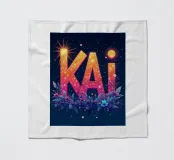 Kai "Ozean und Meer" blaue Blüten und Blätter umgeben den Namen, der glänzt voller Schönheit.