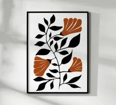 Ein abstraktes botanisches Kunstwerk, bei dem kühne, sich überlappende Blütenblätter in leuchtenden Rot- und Grüntönen und sanften Beigetönen einen harmonischen Tanz von Farbe und Form bilden. Dieses auffällige Design bringt ein modernes, von der Natur inspiriertes Flair in jeden Raum und eignet sich perfekt für Leinwände, Poster oder Kleidung.