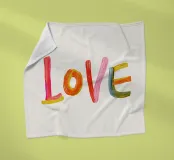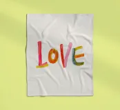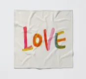 Das Wort "Love" aus bunten, fröhlichen Pinselstrichen.