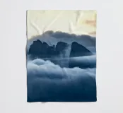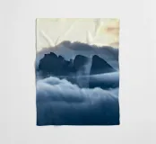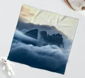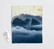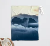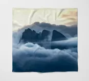 The clouds swirl gently around the slopes, hiding and revealing the rocky summits in a quiet dance. Sometimes, the mountaintops pierce through the mist, glowing in the sunlight above a sea of white. The scene feels peaceful and mysterious, as if the mountains are whispering secrets to the sky.