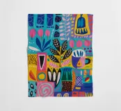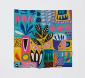 Ein Raster aus abstrakter Flora, Texturen und Töpfen schafft einen organisierten Garten von spielerischer Vielfalt.