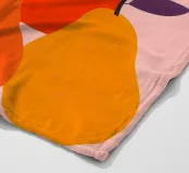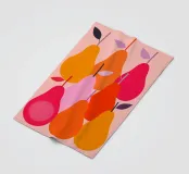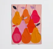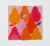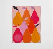 Eine moderne Illustration von Birnen in sanften Farben und einfachen Formen.