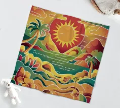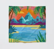 Eine idyllische Szene mit einem ruhigen Swimmingpool, umgeben von üppigen Palmen und tropischem Laub. Die leuchtenden Farben und die ruhige Umgebung fangen die Essenz eines luxuriösen, tropischen Urlaubs perfekt ein.