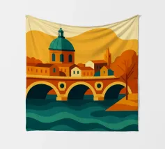 "Architekturzeichnung trifft Reiseplakat im Art-déco-Stil."