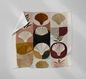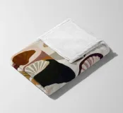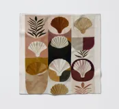 A balanced composition with shells and organic shapes in warm earthy tones. The work shows quiet harmony through color and form.