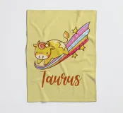Illustration des Tierkreiszeichens Stier in einem niedlichen und lebendigen Stil. Dieser sanfte, goldene Stier, der auf einer Regenbogenspur mit Sternendetails dahinrast, repräsentiert die ruhige und doch entschlossene Natur des Stiers. Perfekt für diejenigen, die Astrologie lieben und nach einer farbenfrohen und einzigartigen Note suchen, um ihren Raum zu personalisieren