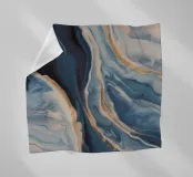 Marmorierte Blautöne blühen mit Wärme wie eine Flut, die auf goldene Ufer trifft.