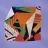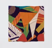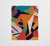 A dynamic and vibrant collage of different abstract patterns and textures, featuring stripes, speckles, and solid color blocks in a rich palette, creating an energetic and modern artwork.