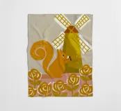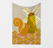 Eichhörnchen auf einem Windrad! Diese einzigartige Kollektion zeigt ein flinkes Eichhörnchen, das um eine sich drehende Windmühle herum in Aktion ist.