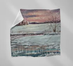 Bare trees and pink skies reflect softly in a thawing winter pond, evoking serene cold beauty.