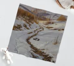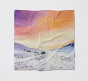 Winterliche Aquarelllandschaft Sonnenuntergang in Orange, Pink, Violet