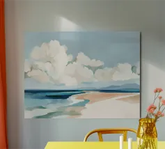 Eine abstrakte Landschaft aus weichen Wolken und sanftem Licht mit einer ruhigen, ausgewogenen Atmosphäre.