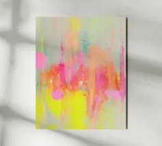 Dieses abstrakte Kunstwerk zeigt ineinanderfließende Farbflächen in Pastellrosa, Gelb, Blau und Grün und Pink. Die weichen Pinselstrukturen und die harmonische Popart Farbkomposition erzeugen eine Vibrierende, Lebendige Atmosphäre. Das Motiv wirkt modern, leicht und emotional und lädt zur freien Interpretation ein.