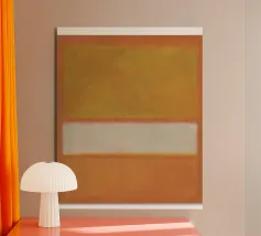 Inspired by the style of Mark Rothko, this abstract painting shows gently merging colour fields in violet, dark green and beige, which create a meditative and emotional mood. In the centre is a bright field that lends calm and depth to the composition. The minimalist and modern colour block arrangement invites the viewer to contemplate the pure effect of colour and form.