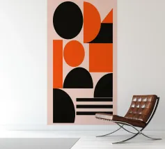 This impressive design combines geometric shapes with a warm colour palette of earth tones, black and red. The combination of vertical lines, circles and curved elements creates a harmonious balance between structure and dynamism. Perfect for murals, mugs, mobile phone cases or cushions - a must-have for modern art lovers who want to add a timeless, artistic touch to their home or everyday life.