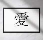 愛 wie du (Liebe) auf Japanisch. Typografie in Schwarz und (transparentem) Weiß. Sie können die Hintergrundfarbe ändern. Minimalistisches Typografie-Poster.