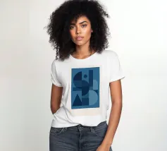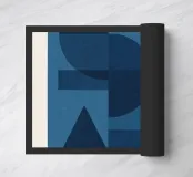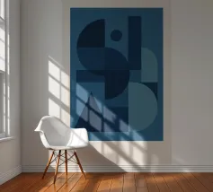 Ein modernes Poster im Stil der abstrakten Bauhauskunst. Klare Formen in Cyanotypie-Blau schaffen eine ruhige, ausgewogene Komposition – minimalistisch, zeitlos und ideal für ein stilvolles Interieur.