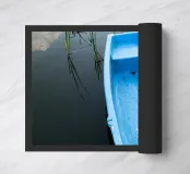 Diese Kunstfotografie "Boot" fängt eine zeitlose Szene mit einer minimalistischen Ästhetik ein.