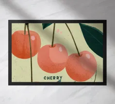 Diese schöne Illustration zeigt einen üppigen Kirschbaum mit hängenden roten Früchten, die eine friedliche und beruhigende Atmosphäre schaffen.