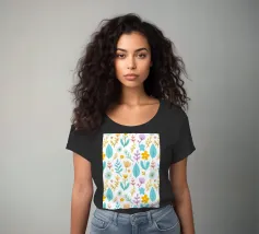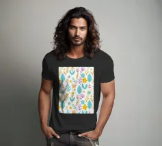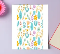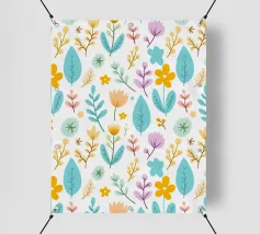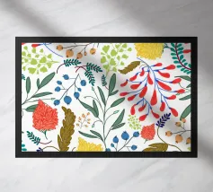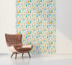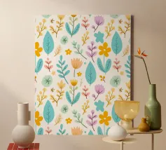 Ein fröhliches florales Muster mit bunten Blättern und zarten Wildblumen. Die handgezeichneten Elemente schaffen ein verspieltes und frisches, von der Natur inspiriertes Design. Perfekt, um einen Hauch von Frühling und Glück in jeden Raum zu bringen!
