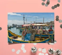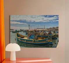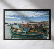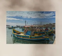 Holen Sie sich den pulsierenden Geist von Maltas berühmtestem Fischerdorf in Ihr Zuhause mit diesem atemberaubenden Poster von Marsaxlokk. Bekannt für seine farbenfrohen traditionellen Fischerboote, bekannt als Luzzu, und seinen ruhigen Hafen, fängt diese Szene die Essenz des mediterranen Lebens ein. Die ruhigen Gewässer und die charmante Dorfkulisse schaffen ein perfektes Gleichgewicht zwischen Frieden und lebhaften Farben. Ideal für Reiselustige, Kunstliebhaber und alle, die die Schönheit authentischer Küstenstädte zu schätzen wissen. Bringen Sie einen Hauch maltesischer Kultur in Ihren Raum mit diesem fesselnden Wandkunstwerk.