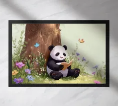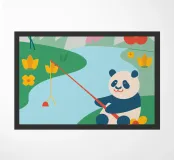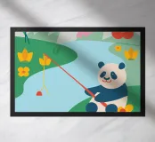 Dieses niedliche Design zeigt einen Panda, der sich beim Angeln vergnügt, voller niedlicher Details und leuchtender Farben.