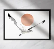 Digitale Zeichnung einer Seemöwe bei Sonnenuntergang