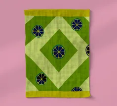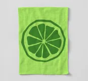 Eine stilisierte grüne Limettenscheibe mit kräftigen, klaren Linien hebt sich von einem helleren grünen Hintergrund ab. Das einfache Design hebt die Segmente und die Schale der Limette hervor.