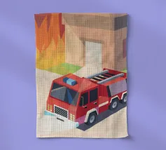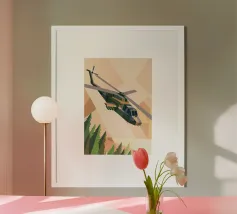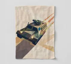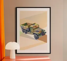 Holen Sie sich eine Illustration von einem bunten Oldtimer in der Wüste mit einem modernen geometrischen Stil.