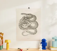 Entdecken Sie die fesselnde Schönheit einer der elegantesten Kreaturen der Natur mit unserem Brown & White Python Poster. Dieses eindrucksvolle Bild zeigt die glatten Schuppen und komplizierten Muster der Schlange, die in warmen, erdigen Tönen hervorgehoben werden, die eine kühne und doch raffinierte Präsenz schaffen. Dieses Poster eignet sich perfekt, um jedem Raum eine einzigartige Note zu verleihen, und verzaubert Naturliebhaber und Reptilienfans gleichermaßen.