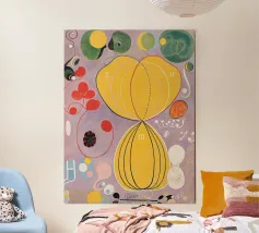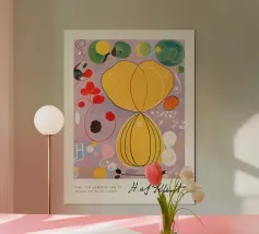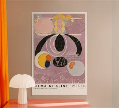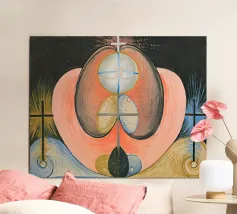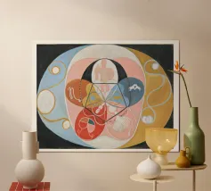 Tauchen Sie ein in Hilma af Klints vielschichtigen "Baum der Erkenntnis Nr. 5". Dieses fesselnde abstrakte Werk, eine meisterhafte Mischung aus Aquarell und Graphit, stellt spirituelle und evolutionäre Konzepte durch ineinander verwobene organische und geometrische Formen dar. Klints Vorreiterrolle in der abstrakten Kunst zeigt sich in der durchdachten Komposition, die Zusammenhänge und verborgene Wahrheiten hervorhebt. Unser hochwertiges Digitalposter mit einer Auflösung von 7000x5000 Pixeln und 300 dpi gibt die subtilen Texturen und tiefgründigen Details dieses einflussreichen Meisterwerks makellos wieder und macht es zu einer einzigartigen Ergänzung für jede Kunstsammlung.