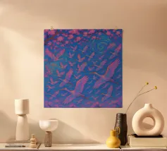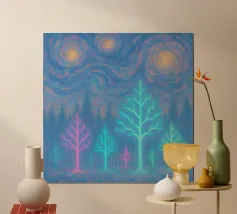 Bringen Sie Freude und Farbe in jeden Raum mit diesem skurrilen Kunstwerk, das vier verspielte Pandas zeigt, die unter einem wirbelnden, sternenklaren Nachthimmel tanzen. Inspiriert von ausdrucksstarken Pinselstrichen und verträumten Farbtönen, vereint das Design Charme, Bewegung und lebendige Energie. Es eignet sich perfekt für Kinderzimmer, Kinderstuben oder für alle, die niedliche und aufmunternde Kunst lieben, denn es verleiht Ihrer Einrichtung Wärme und Fantasie. Als reizvolle Verschmelzung von Fantasie und Kunstfertigkeit zaubert es ein Lächeln auf die Lippen und erhellt Ihre Wand mit seinem magischen nächtlichen Schein.