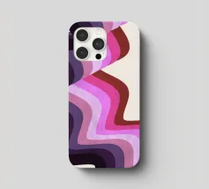 Das Bild zeigt dynamische Wellen und Muster in den Farben Pink, Lila und Schwarz