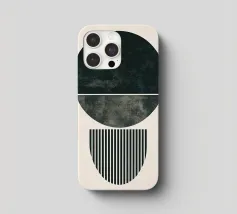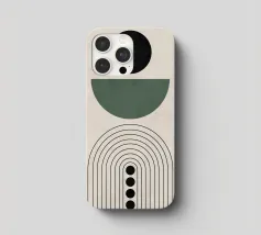 Dieses geometrische Design kombiniert klare schwarze Linien, die einen Halbkreis formen, mit überlagerten Kreisen in Grün und Schwarz. Der Kontrast zwischen den gedeckten Farben und dem hellen Hintergrund verleiht diesem Motiv eine moderne und harmonische Ästhetik. Perfekt für Wandbilder, Tassen, Kissen oder Handyhüllen, bringt es eine elegante und beruhigende Atmosphäre in jeden Raum. Ideal für Liebhaber minimalistischer und zeitloser Boho-Kunst sowie als inspirierende Geschenkidee.