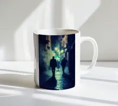 In einer Explosion von Grün und Gelb verschmelzen zwei Silhouetten mit dem leuchtenden Dekor der Stadt. Eine abstrakte und elektrische Vision, die die Intensität der nächtlichen Bewegung zwischen Realität und Illusion einfängt. Ideal für alle, die auf der Suche nach einem vibrierenden, immersiven Werk sind.