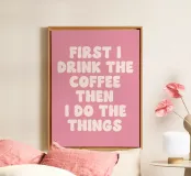 Erst trinke ich den Kaffee, dann tue ich die Dinge Zitat (Pink To Leinwand mit Schattenfugenrahmen