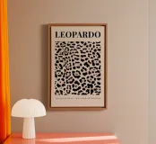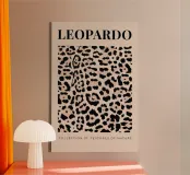 A wildlife textures featuring a bold leopard spot pattern in deep charcoal and soft peach, ideal for a contemporary safari-inspired gallery wall.