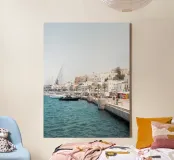 Summer vibes in a port in Greece Leinwand mit Schattenfugenrahmen
