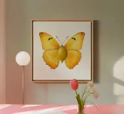 Dieses skurrile Design zeigt einen einzigartigen Zitronenschmetterling, dessen Körper eine realistische Zitrone ist und dessen Flügel leuchtend gelb sind. Vor einem transparenten Hintergrund fängt dieses verspielte und frische Muster die Essenz des Sommers ein. Perfekt für alle, die ihren Räumen einen lustigen, von Zitrusfrüchten inspirierten Touch verleihen möchten, sei es bei Textilien, Drucken oder Accessoires. Das helle, fröhliche Design bringt Farbe ins Spiel und verleiht jeder Einrichtung einen skurrilen Charme.