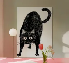 Diese freche Katze sagt, was sie denkt – mit einem Blick zwischen Gleichgültigkeit und Überlegenheit. Der minimalistische Stil, die kräftigen Farben und der ikonische Mittelfinger machen dieses Poster zur ultimativen Anti-Stress-Deko. Perfekt für Büro, WG, Studio oder als witziges Geschenk für alle mit einem Hang zu ironischer Ehrlichkeit und derben Katzenhumor.