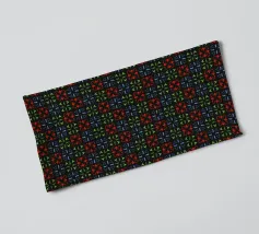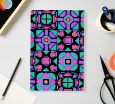 Dieses grafische Pfeilmuster zeigt eine moderne Komposition sich wiederholender Pfeile in einer Vielzahl von Farben, die ein Gefühl von Bewegung und Energie vermitteln. Die begrenzte Farbpalette schafft Harmonie, und die Verwendung von Pfeilen symbolisiert die Richtung.