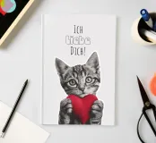 Wenn Worte allein nicht reichen, dann sag’s mit einer Katze! Dieses süße Kätzchen hält ein rotes Herz fest in den Pfoten und schaut dabei so rührend, dass kein Herz unberührt bleibt. Minimalistisch gestaltet, mit klarem Fokus auf Ausdruck und Gefühl. Ein modernes Liebesmotiv, das sowohl niedlich als auch stilvoll ist. Ob als Geschenk zum Valentinstag, zum Jahrestag oder einfach, um jemandem „Ich liebe dich“ zu sagen, dieses Motiv bringt jede Menge Herz in dein Zuhause.